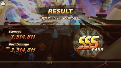 コンチャス('ω')ノ 引き続き異界ダンジョン攻略中です! 最後!光の異界ダンジョンこと光輝の魔獣でもSSSと取れましたあああ!! 350万以上でやっつけるとSSSです。 倒せず350万以上いってもA+までっぽいですね(´・ω・`) 倒すと最後に50万ボーナスもらえるの…