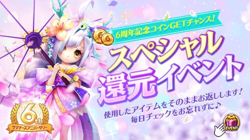 コンチャス('ω')ノ 6周年のサブイベントみたいなのきましたね! 今回は「6周年記念コインGETチャンス!スペシャル還元イベント」について紹介していきたいと思います♪ 期間について 詳細について スペシャル還元について まとめ 期間について ■ 期間 2020年4月24…