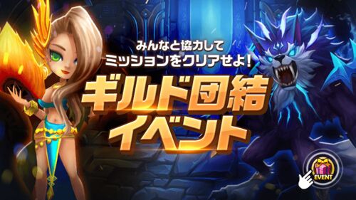 ギルド団結イベント ギルド団結イベント 期間 詳細 共同ミッション1.エネルギーを消費しよう 共同ミッション2.ギルドバトルに参加しよう 共同ミッション3.占領戦でモンスターを使おう 共同ミッション4.迷宮バトルで勝利しよう ★BONUS報酬!★ ※チェック!…